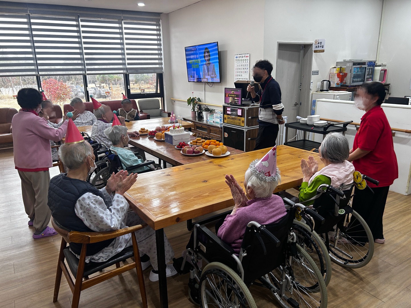 어르신들의 생신을 맞이하여 맛있는 간식과 과일등을 준비하여 생신잔치를 진행하였습니다.
