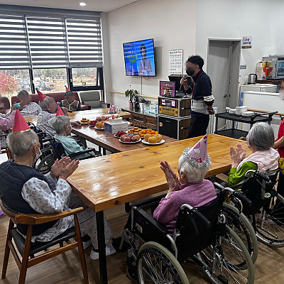 제목 : 25년 4분기 어르신 생신잔치 시간 : 2025년 12월 24일 14:00~14:40 장소 : 모랑가실버타운 거실 내용 : 축하노래 부르기 및 촛불불기 노래 들으며 박…